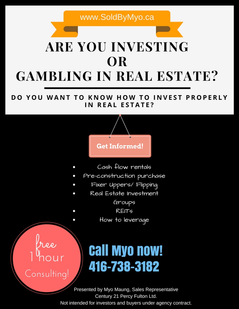 Many of my investor clients have asked me questions like where or how to invest in Real Estate. I want to say investing and gambling is different. No difference investing in Stocks or Real Estate. You need to educate yourself what you are doing or you can lose your investment.